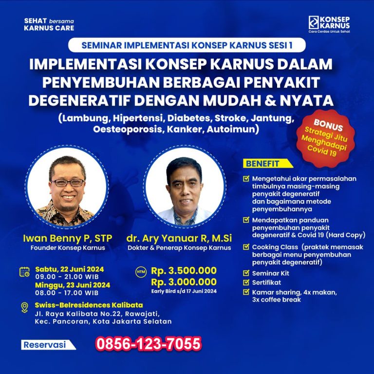 Jika Anda atau ada keluarga yang mengalami penyakit degeneratif Anda wajib ikut Kuliah Konsep Karnus ini
